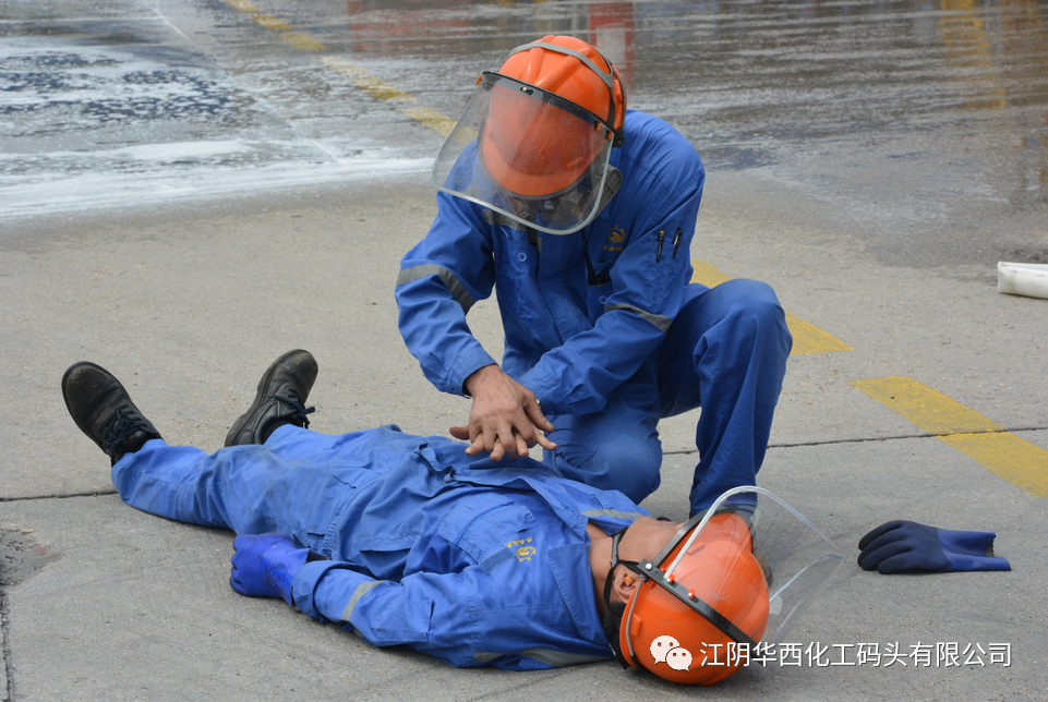 演練模擬:H202發貨臺丙酮泄漏并發生閃燃,搶險過程中一名職工暈倒。